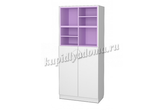 Вместительный стеллаж Рокси для книг и игрушек, часть закрыта дверками , открытые полки выполнены в ярком современном цвете ЛДСП.