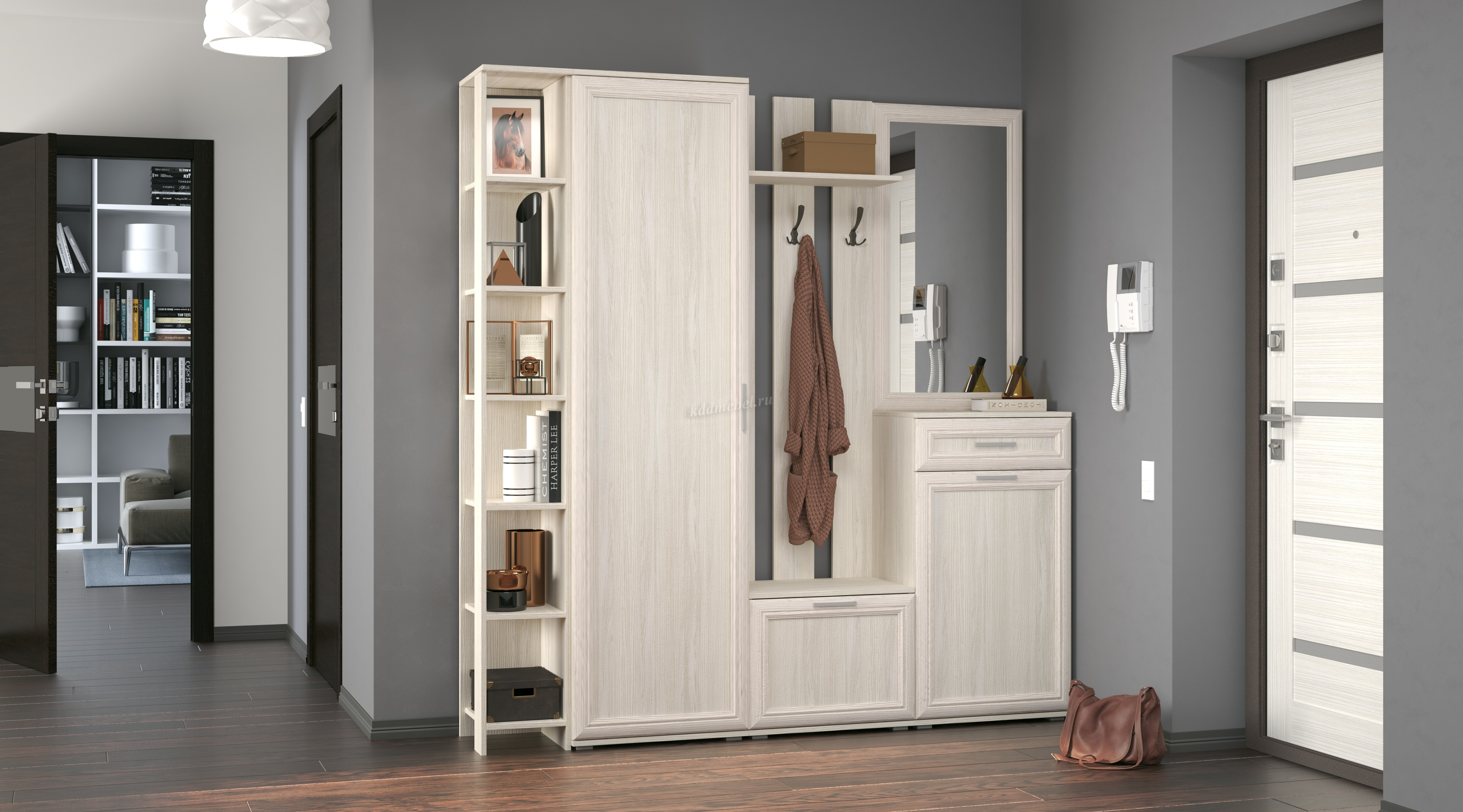 Вешалка с тумбой "Джаз" даст возможность компактно и аккуратно расположить в прихожей верхнюю одежду и обувь, поможет создать рационально структурированный, красивый и удобный интерьер квартиры. Лаконичный и изящный дизайн изделия украсит прихожую, а компактный размер позволит вписаться даже в небольшое по размеру помещение. Коллекция мебели - это идеальное решение для организации пространства в прихожей. Мебель этой коллекции является модульной- поэтому у вас есть возможность самостоятельно комбинировать её так, как посчитаете нужным. Благодаря дизайну, выполненному в едином стиле - мебель коллекции "Джаз" сделает интерьер вашей прихожей современным и стильным. Использование одного цвета в оформлении мебели подчёркивает изысканный вкус владельца, а также зрительно увеличит площадь.