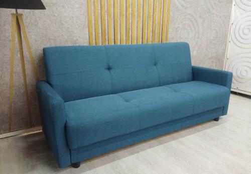 Диван трехместный компактного типа. Механизм трансформации «Книжка». Наполнитель:Пружинный блок, высокоэластичный ППУ, синтепон. Высота опоры/п.м./отступ от стены: 40/ 440 / 160 (мм.) Размер посадочного места: 1850*530 (мм.) Подлокотник: 100*730*600 (мм.) Бельевой ящик: 1700*670*160.