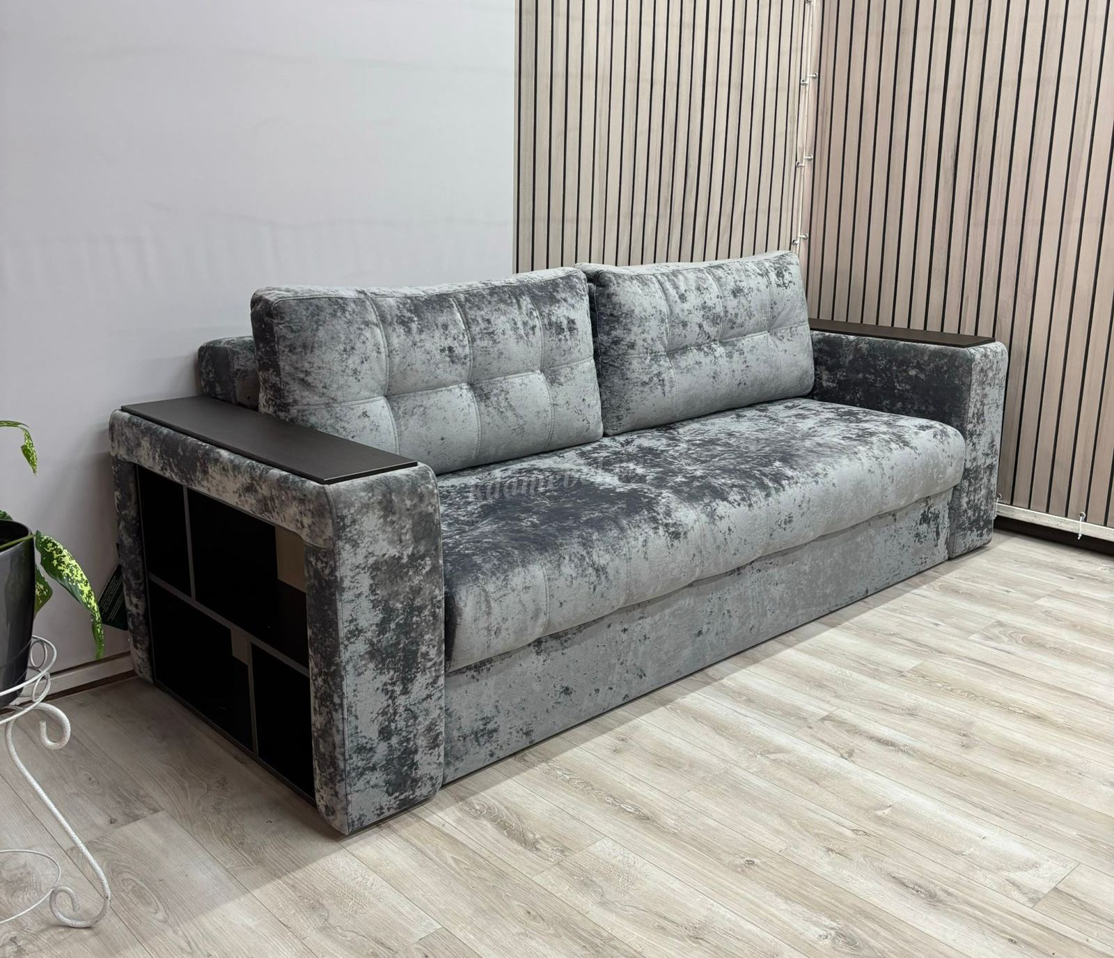 Диван-кровать Марк БД вар.1 (Плюш графит/Венге) наличие товара: