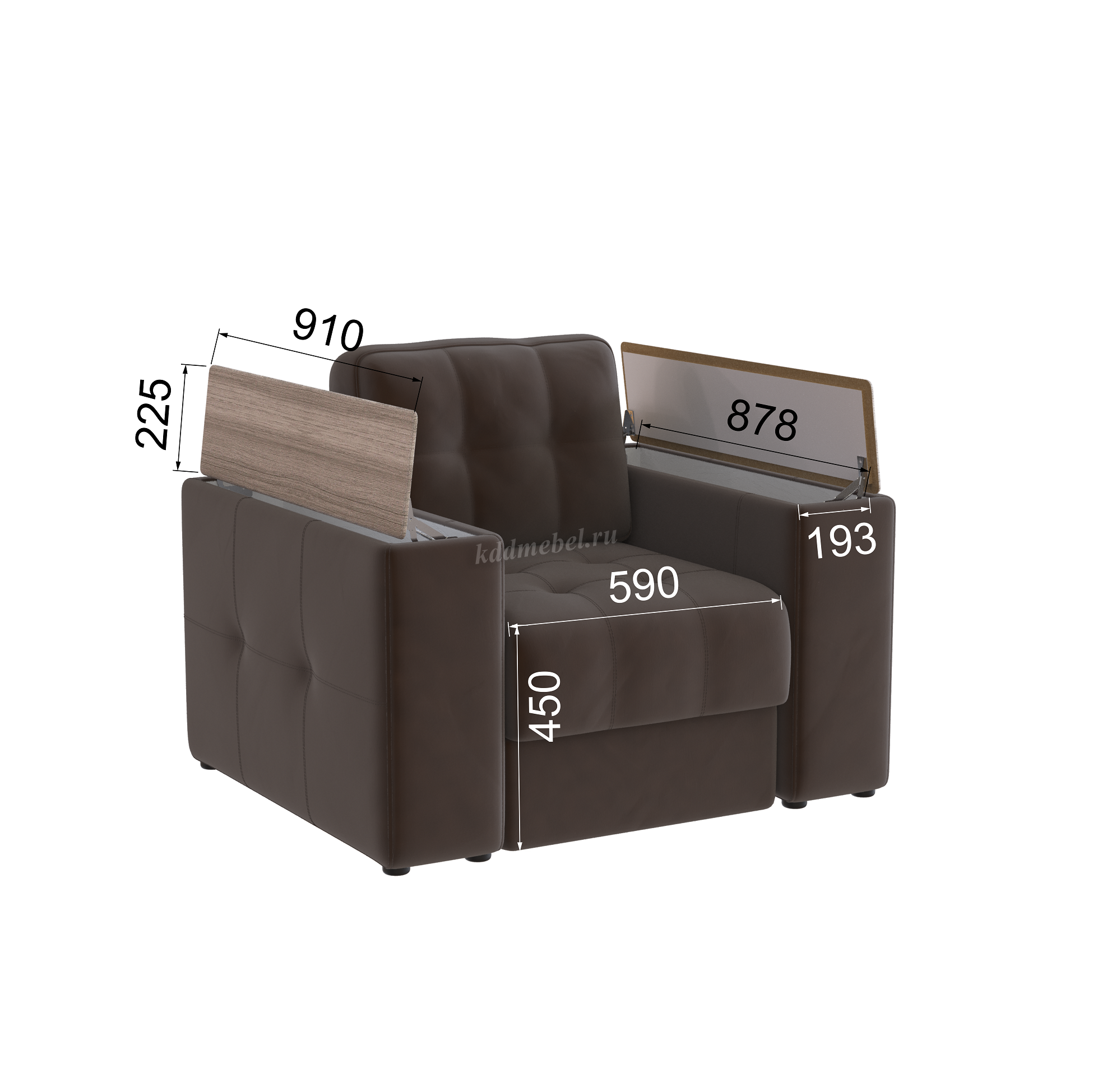 Подлокотники шириной 265 мм, обтянутые тканью и простеганные двойной отделочной декоративной строчкой.